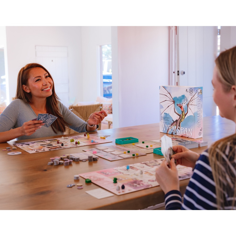 In Wyrmspan, fiecare jucator isi construieste propria retea de pesteri, atrage dragoni cu abilitati unice si declanseaza efecte in lant pentru a obtine puncte. Jocul pune accent pe optimizare, timing si sinergii intre carti, oferind o experienta satisfacatoare si rejucabila. Este un board game apreciat pentru echilibrul dintre accesibilitate si profunzime si face parte din categoria de jocuri de strategie.